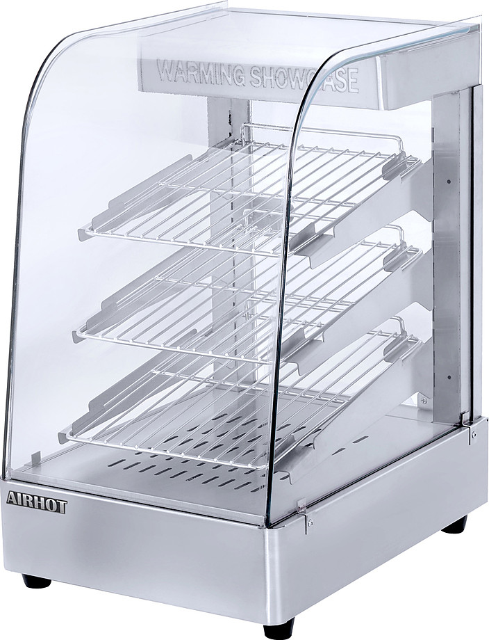 Тепловая витрина Airhot HW-355 предназначена для демонстрации, подогрева и кратковременного хранения пиццы, булочек, пирогов и различных закусок на предприятиях общественного питания и торговли. Модель оснащена 3 полками, терморегулятором, температурным дисплеем, LED-подсветкой и доступом с задней стороны. Корпус выполнен из нержавеющей стали.