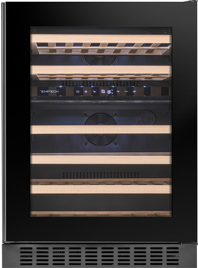 Винный шкаф Temptech Oslo OX60DRB предназначен для охлаждения, хранения и демонстрации бутилированного вина в отелях, винных магазинах, на предприятиях общественного питания и торговли. Модель оснащена сенсорной панелью с дисплеем для регулировки температуры и освещения, 6 полками, дверцей со встроенной ручкой, фильтром с активированным углем и белой светодиодной подсветкой. Дверца выполнена из двухслойного стекла, заполненного аргоном, и с защитой от УФ-лучей, передняя панель - из черного стекла, полки - из бука.